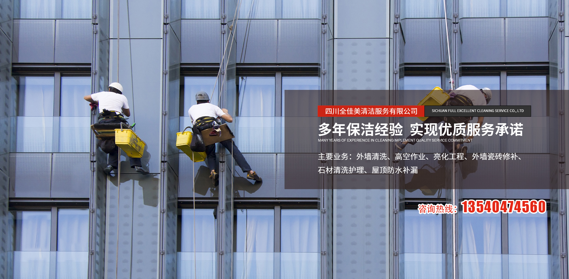 四川全佳美清潔服務(wù)有限公司成立于2017年11月20日,注冊資本200萬元人民幣,是一家專業(yè)從事高空外墻清洗,外墻維修,開荒保潔,石材養(yǎng)護(hù),外墻防水等一體化的工程服務(wù)公司。公司先后服務(wù)于成都鐵路培訓(xùn)學(xué)校,雙流空港酒店,省體育館等寫字樓及工業(yè)園區(qū)的外墻清洗保潔及維修服務(wù)。經(jīng)過多年的發(fā)展與努力,公司已具備一定的規(guī)模及實力?,F(xiàn)擁有一支技術(shù)精湛的服務(wù)團(tuán)隊,以高標(biāo)準(zhǔn)的服務(wù)品質(zhì),專業(yè)的安全技術(shù)實力,為全川不同群體的客戶提供更安全,更周到的清洗服務(wù)解決方案,期待與你的合作。